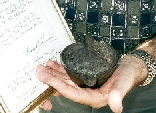 Со времени разработки угольных месторождений в залежах угля было найдено огромное количество древних вещей и поделок людей, живших до Потопа. Этот железный котелок (фотография слева) был найден в 1912 году в глыбе угля на электростанции Оклахоме. Сейчас он находится в Креационистском музее, (www.creationevidence.org, Creation Evidence Museum). Ньютон Андерсен нашел этот колокол (фотография справа) в массе угля в 1944 году. Колокол находится у него. Кто не верит, может лично с ним поговорить по телефону или написать ему письмо: (304)-842-5556, newt@iolinc.net.